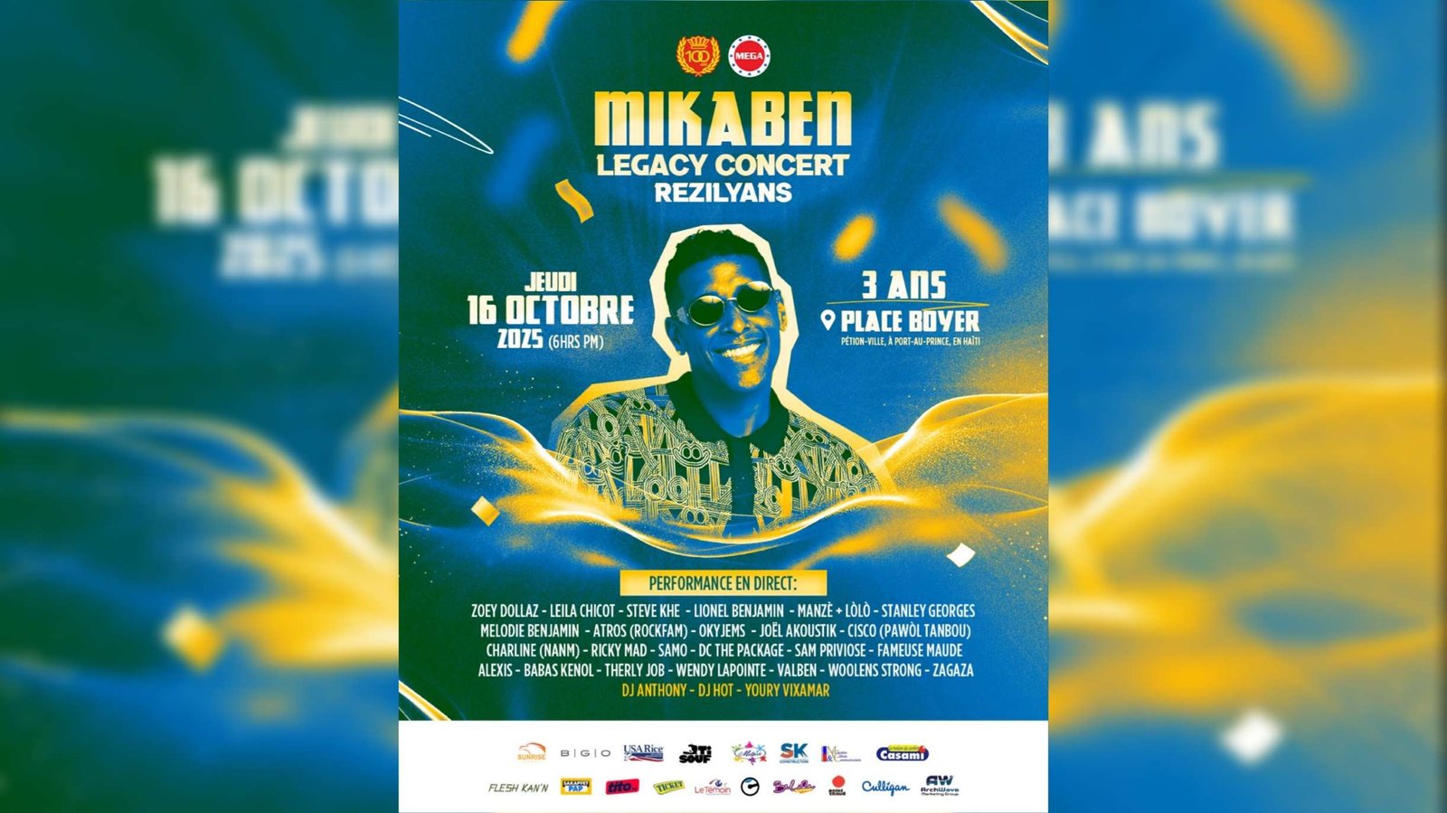 Trois ans après la disparition tragique de Mikaben, l’un des artistes les plus aimés d’Haïti, un grand concert commémoratif intitulé « Mikaben Legacy Concert – Rezilyans » aura lieu ce jeudi 16 octobre 2025, à la Place Boyer, à Pétion-Ville.