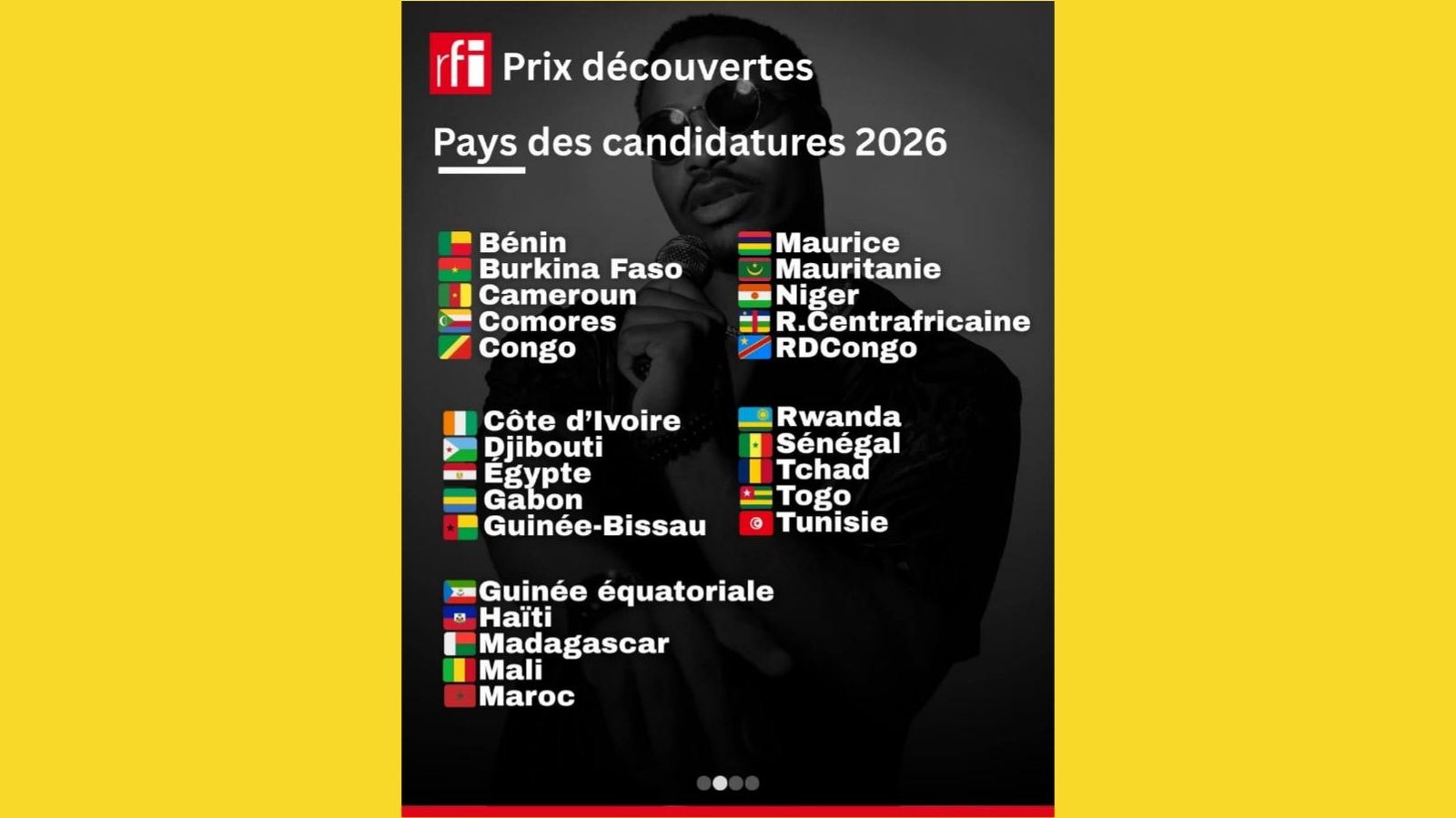 La Radio France Internationale (RFI) a dévoilé la liste des 25 pays dont les artistes sont officiellement retenus parmi les candidatures pour le prestigieux Prix Découvertes RFI 2026, un concours qui met en lumière les talents émergents du continent africain et de la diaspora.