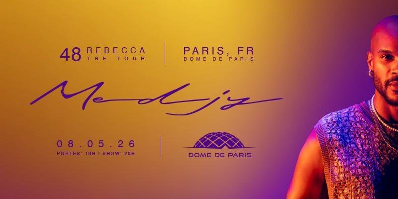 Le public parisien peut déjà réserver sa date : Medjy sera sur la scène du Dôme de Paris le 8 mai 2026, à l’occasion de sa nouvelle tournée intitulée « Rebecca – The Tour ». L’annonce, dévoilée via une affiche au design lumineux mêlant violet et or, confirme une soirée qui s’annonce aussi élégante que spectaculaire.