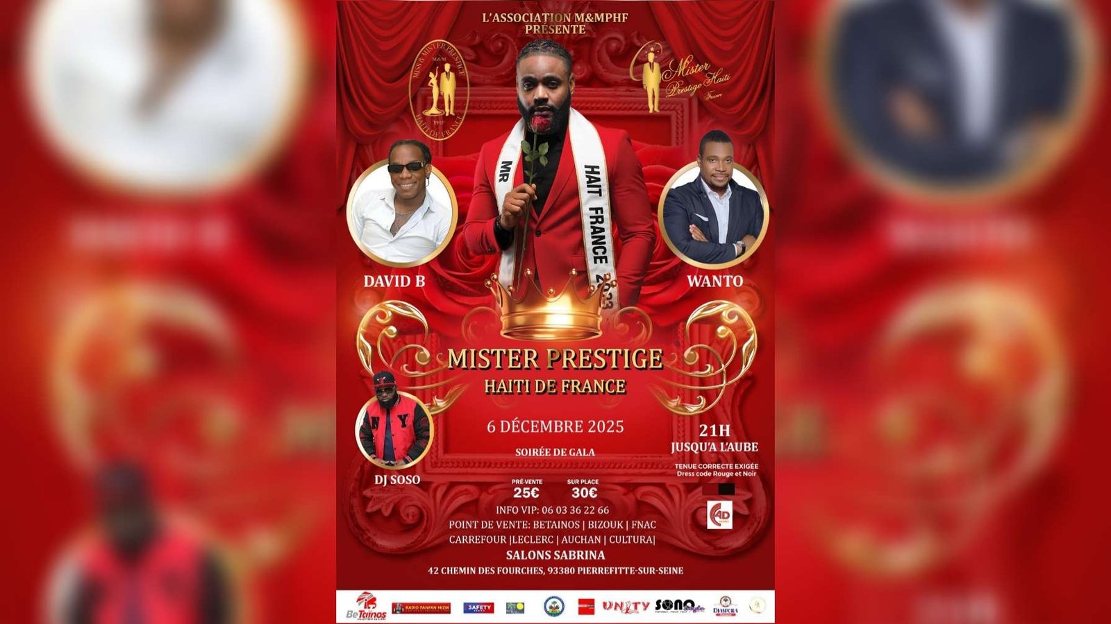 L’Association M&M PHF présente la nouvelle édition du Mister Prestige Haïti de France, un événement d’exception qui célèbrera la beauté, le charisme et l’élégance de la communauté haïtienne de France.