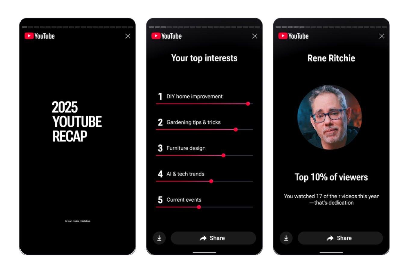 Disponible directement dans l’application, le YouTube Recap offre une présentation dynamique, mêlant statistiques, extraits de contenus et classements personnalisés. Les utilisateurs peuvent ainsi visualiser leurs vidéos les plus regardées, le temps passé sur la plateforme ou encore les artistes qu’ils ont le plus écoutés via YouTube Music.